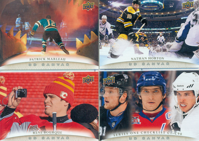 La série UD Canvas est une de mes préféré jusqu’à maintenant dans la Serie One de Upper Deck. On y trouve de belles photos ainsi qu’un carton texturé peu utilisé pour des cartes de hockey, j’espère être en moyen de finir cette série.Il y a aussi des Young Guns Canvas, mais jusqu’à maintenant, je n’est pas été en messure de mettre la main sur celle-ci. Si j’arrive à en avoir une, peut-être que je ferais la collection qui sait ?